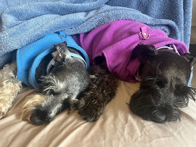 2才と4才のミニチュアシュナウザーの男の子の2匹です。2匹はとても活動的でお散歩はビーチで1日( 45分-1時間)2回必要です。