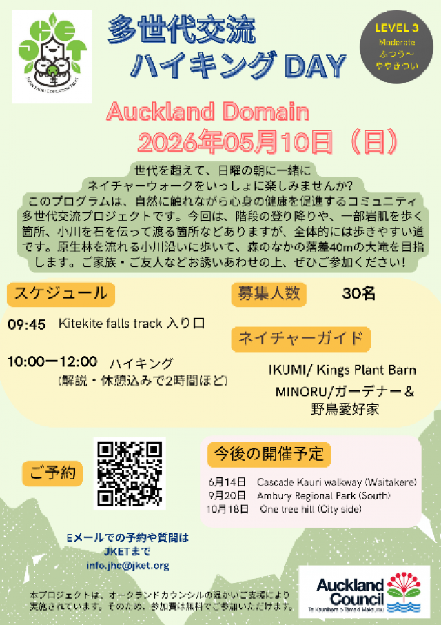 Japan Kauri Education Trust主催のハイキングイベントのお知らせです。