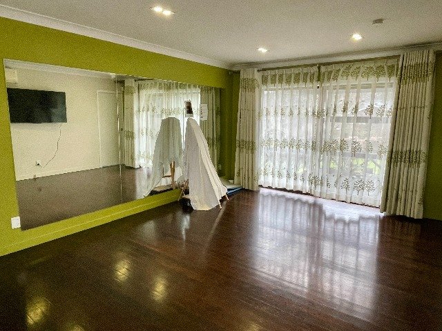 • 広々としたリビング:壁一面のミラー付きで、エクササイズ、ヨガ、ダンスに最適!