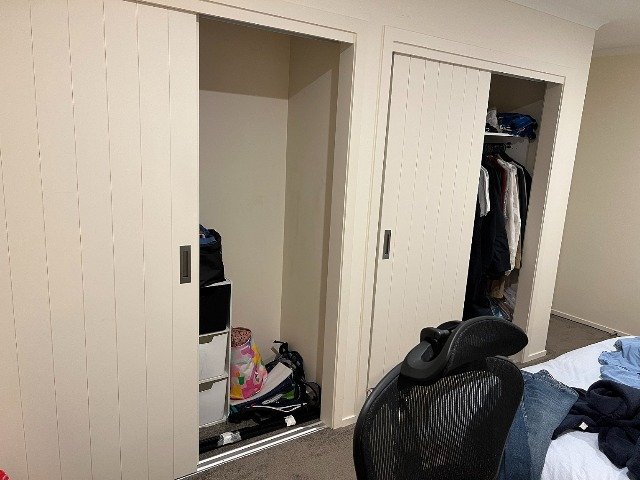 The room is very spacious, with double wardrobes.