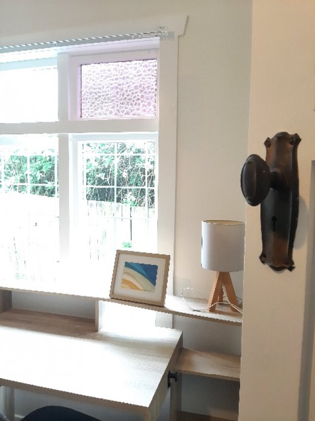 私たちの家は、ニュージーランドらしい天井の高さが特徴のクラシックな造りです。お貸しするお部屋を含め、家の一部には伝統的なステンドグラスがあしらわれており、とても落ち着いた綺麗な雰囲気です。