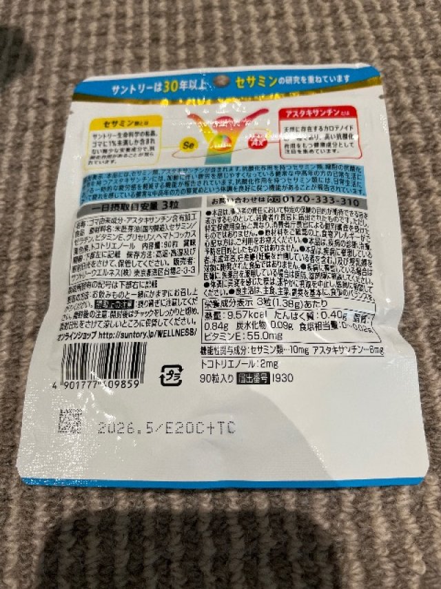 サプリメント90日分 未開封をお譲りします。 ・サントリー セサミン バイタル 1袋90粒入り、30日分 計3袋 賞味期限2026年5月 CBDでの受渡しになります。もし他に掲載しているものもまとめて購入して貰える場合にはオークランド市であれば配達相談可です。