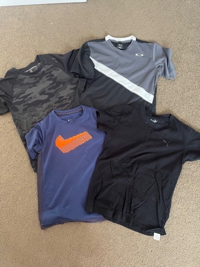 Tシャツ4枚セットです。 ナイキ S プーマ 150 オークリー 2XS ユニクロ 140 サイズの表記がまちまちですが、全部同じような大きさです。 4枚セットで$5。 ピックアップはオークランドのノースショアです。 送料を負担してくださるのであれば、郵送いたします。 3日たっても返事がない場合は、申し訳ありませんが、もう一度メッセージを送ってください。よろしくお願いいたします。