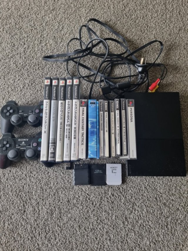 PS2本体とドラクエ5,8ファイナルファンタジー7.8.10等のソフト、コントローラーすべて込み$200で売ります。