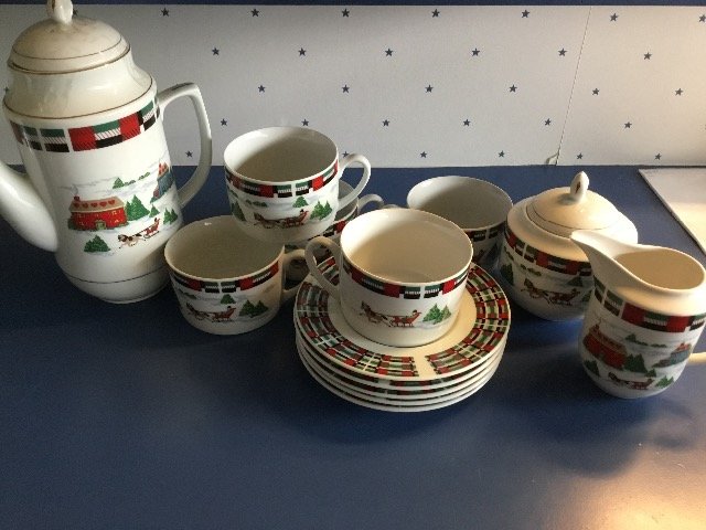 1. Xmas patterns tea set $30