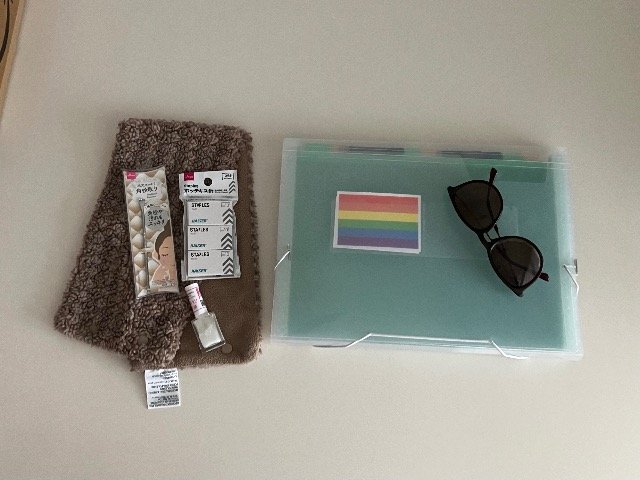 lentes&marcosのブラウンのサングラス、kmartのファイル、DAISO ダイソーのホチキスの芯、角質取り、トップコート、ネックウォーマーをまとめて$15でお譲りします! https://www.kmart.co.nz/product/expanding-file-13-pockets-43287895/
