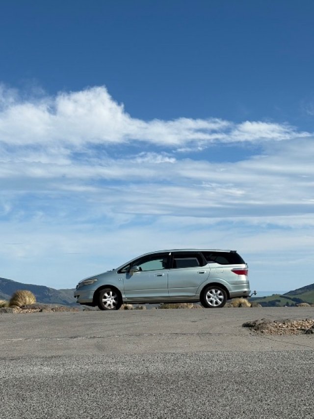 • 5人乗り、後部座席を倒せばフルフラットになり、二列目を倒さなくてもスーツケースが3つ乗るほど、かなり広々としています!